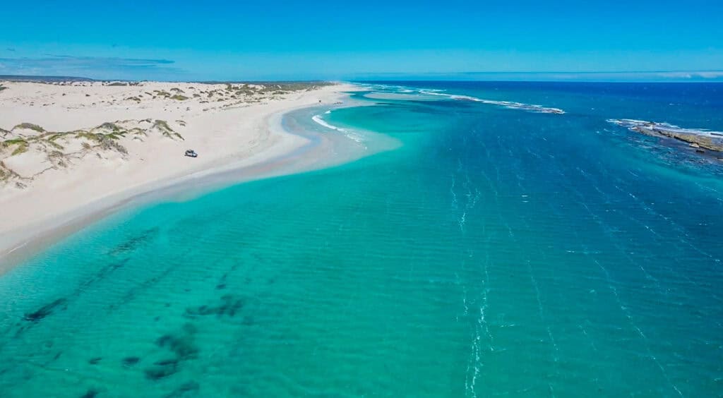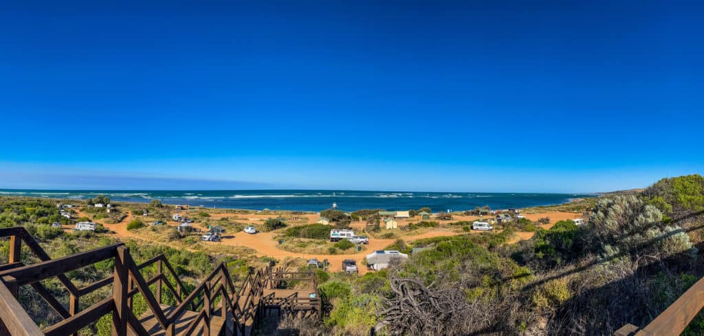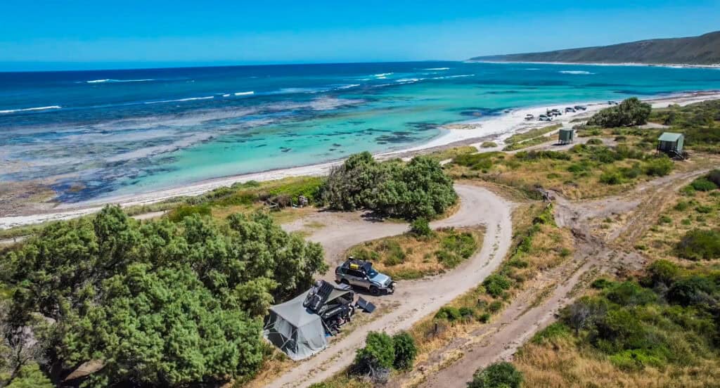 A little over an hour north of Geraldton, we stumbled across an absolute gem: Little Bay. Tucked behind a ridge of She-Oaks, this quiet beachside campground feels like you’ve discovered a secret slice of paradise. The sandy track in requires 4×4 access, but the sand was firm enough that we didn’t need to drop the tyre pressure.