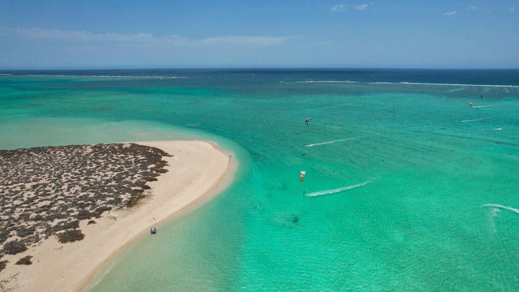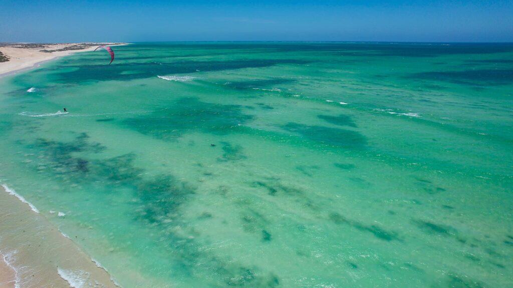 Sheltered from the strong SW winds, the bay becomes a glassy lagoon of turquoise water and white sand, ideal for kiting. With endless space, stunning contrast between the red dirt and clear water, and absolute isolation, it’s hands-down our favourite place to kite in Australia. Access is 4WD-only via soft-sand tracks, but paradise is rarely easy.
